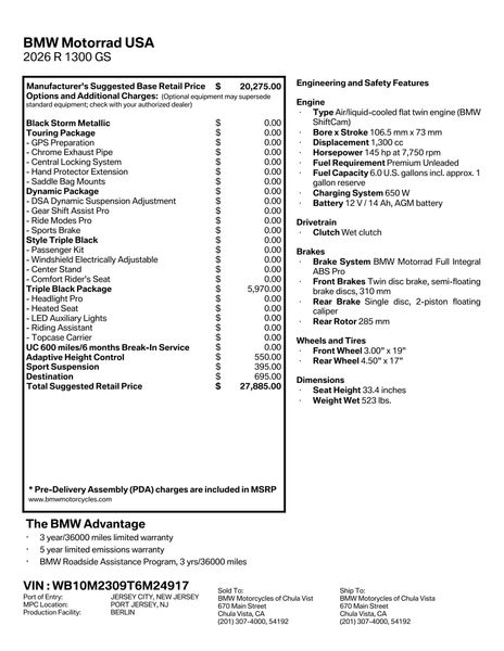 The world is yours. There are no impossible ambitions, only the wrong equipment. Thankfully, you won’t need to worry about that at all, as you are already well equipped. Long journeys, short trips, extending the season, taking shortcuts. Alone or with a passenger? In any case, you will always be riding with our highest possible level of comfort. You exude authority – and it’s no wonder; you have every reason to be relaxed. And I am reliably at your side, your R 1300 GS Triple Black. BMW Motorcycles of Chula Vista is South Bay’s premier source for your new BMW Motorcycle and to support your adventures to come! R1300GS, GS 1300.